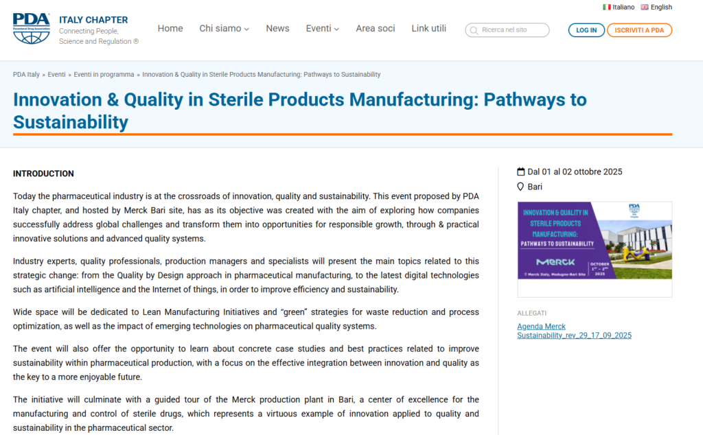 Ho progettato la grafica ufficiale per l’evento PDA/Merck Innovation & Quality in Sterile Products Manufacturing.